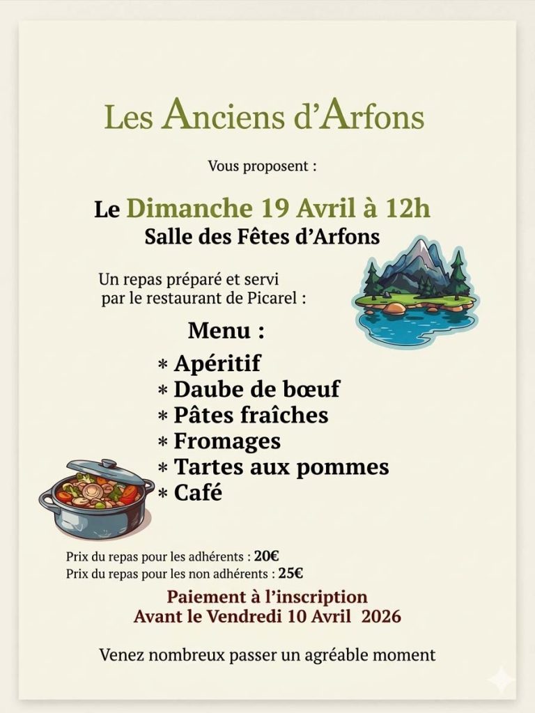 L’association Les Anciens d’Arfons a le plaisir de vous inviter à partager un moment de convivialité et de gourmandise le dimanche 19 avril 2026.